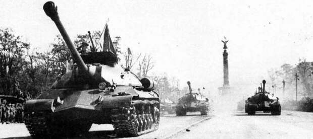 Изюминкой парада стал марш новейших советских тяжелых танков ИС-3. 52 этих стальных богатыря произвели фурор, смешанный как у наблюдавших за парадом берлинцев, так и у союзников с чувством ужаса. Западная броня просто меркла на их фоне.